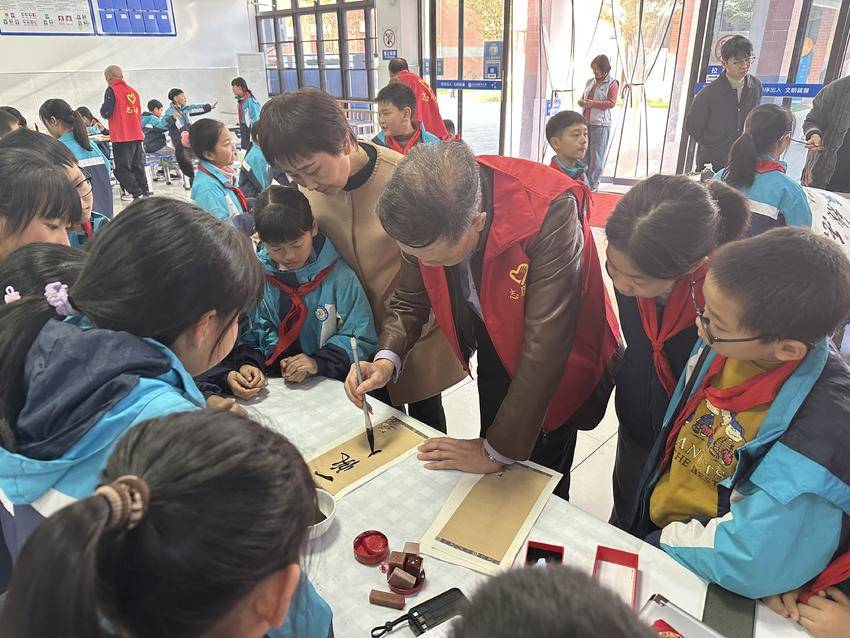 湖北日报客户端讯(通讯员汤贵婵、杨美玲、黄风菊)金秋送爽,墨香满园。为弘扬中华优秀传统文化,丰富校园美育内涵,2025年10月28日下午,远安县老年书画协会携手振华小学,成功举办“翰墨飘香进校园·丹青溢彩润童心”主题书画展写活动。活动现场墨香弥漫,艺术氛围浓厚,为孩子们的心中悄然播下了热爱传统文化的种子。