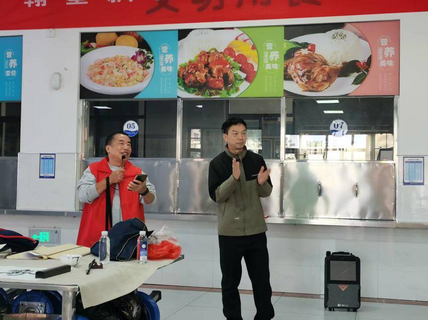 活动现场瞬间化身为一座流动的艺术殿堂。老艺术家们铺纸研墨,挥毫创作,或书写苍劲有力的字句,或描绘意境深远的画卷。学生们或驻足观赏,或轻声请教,现场气氛热烈而融洽。精湛的技艺令师生赞叹不已,人群中不时响起阵阵掌声,书画艺术的魅力在此刻尽显无遗。