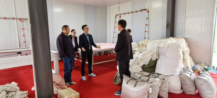 作为”嫘祖故里”与”垭丝之乡”,嫘祖镇承载着养蚕缫丝的千年文明积淀。从嫘祖开创蚕桑技艺至今,桑蚕养殖与丝织产业已深深融入当地发展脉络 。周志军总经理一行来到在娅丝加工企业生产车间,近距离察看缫丝、织造等关键环节,仔细询问原材料利用率、产品研发方向及市场销售情况,认真听取合作社关于”传统工艺与现代技术融合”的实践汇报,对当地依托文化品牌、整合产业资源的做法表示认可。他强调,嫘祖镇的娅丝产业承载着文明传承的使命,更肩负着乡村振兴的责任,在接下来的发展中要把握三个关键:一是要坚守文化根脉,将嫘祖蚕桑文化融入产业品牌建设。可通过申报国家地理标志,打造品牌形象,增强产品文化附加值;二是要强化创新驱动,引入机械化设备,在工艺升级、产品多元化上寻求突破;三是要依托本地产业基础,与非遗刺绣结合,提高产品文化价值,提升产业竞争力。