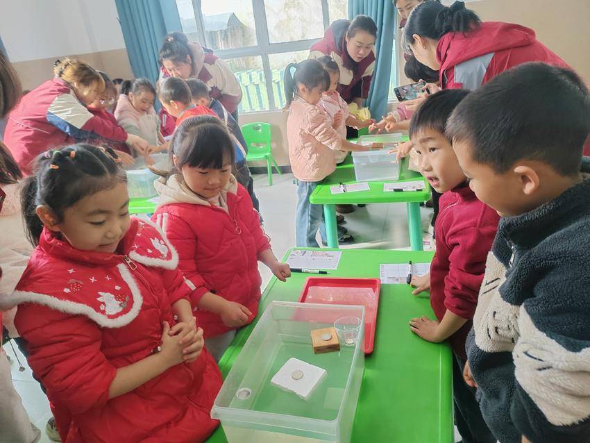 活动伊始,主持人详细介绍了活动背景、目标及流程,明确了以科学领域教学为核心的研讨方向,让参与教师对活动重点有了清晰认知。在“向阳初绽·优课共赏”教学展示环节,嫘祖镇中心幼儿园的陈琳老师和机关幼儿园的王艳老师、马杨政华老师分别带来了《动物城破案》《小兔多多有难题》《让硬币浮起来》三节优质示范课。课堂上,教师们以趣味情境为切入点,巧妙设计探究任务,充分调动幼儿的主动性与创造性,让幼儿在动手操作、合作探究中感受科学的奇妙,展现了扎实的教学功底与先进的教育理念,为观摩教师提供了直观生动的教学范例。