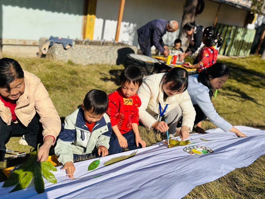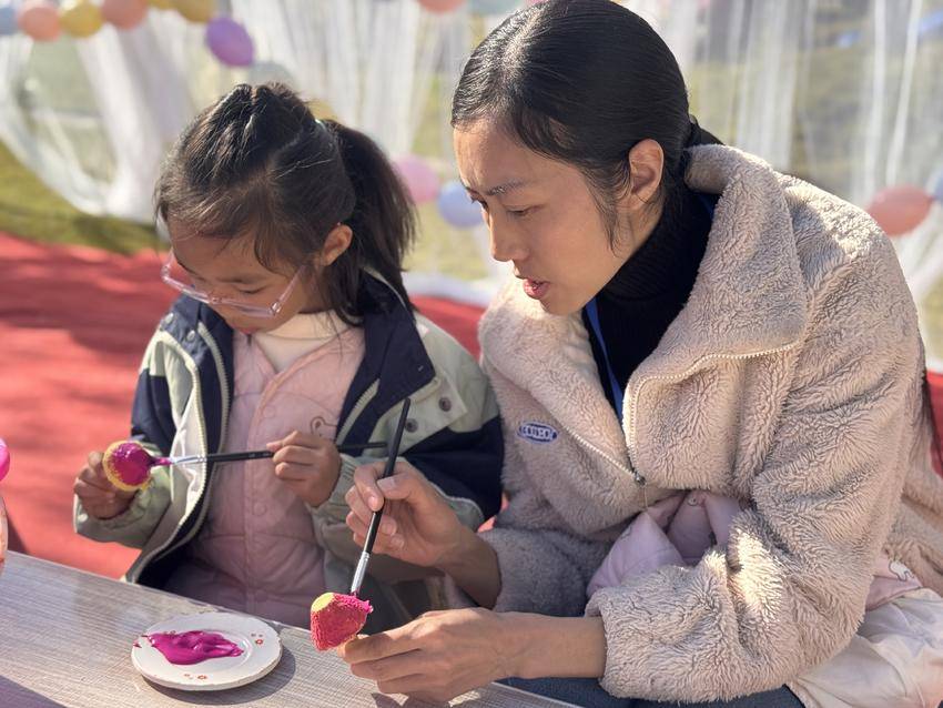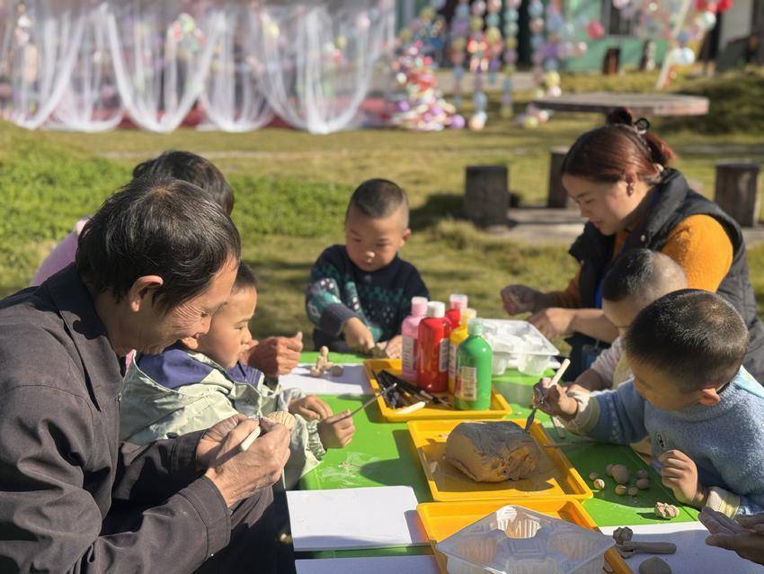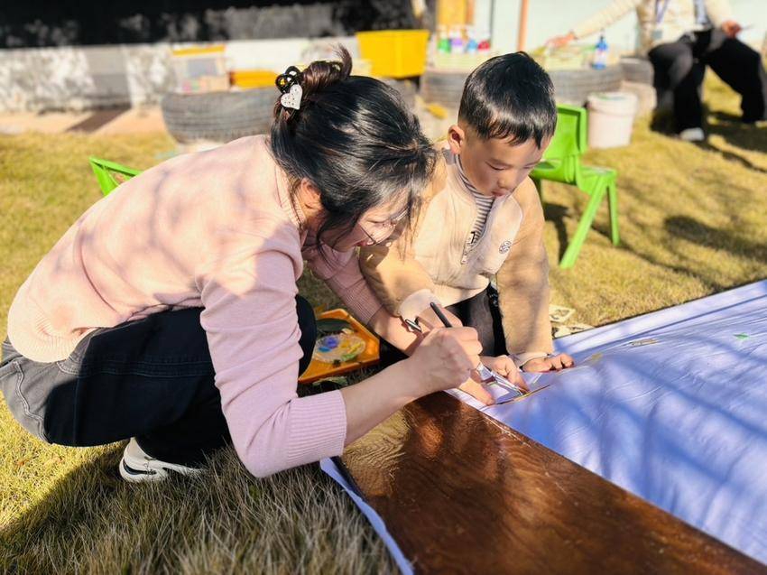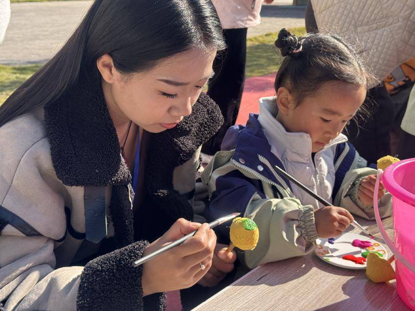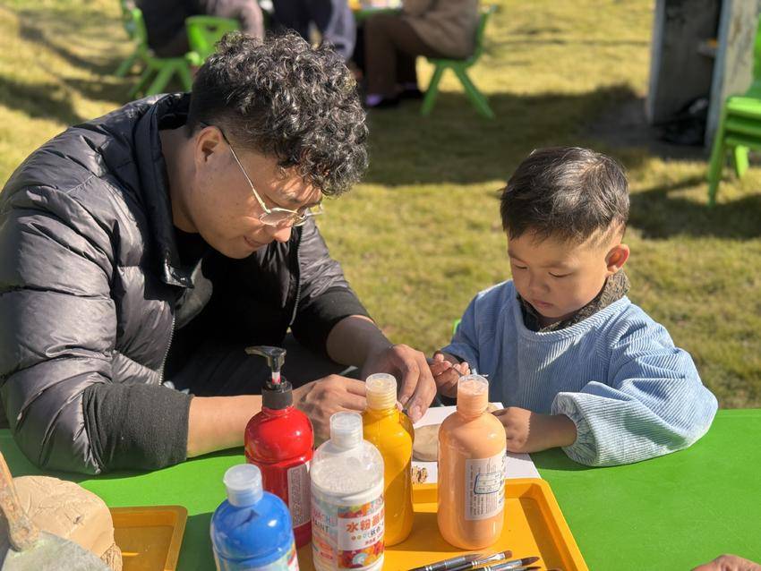 家长们则化身“助手”,与孩子一起捡落叶、调颜料、捏泥巴,在“接地气”的创作中,重拾童年的纯粹与快乐。