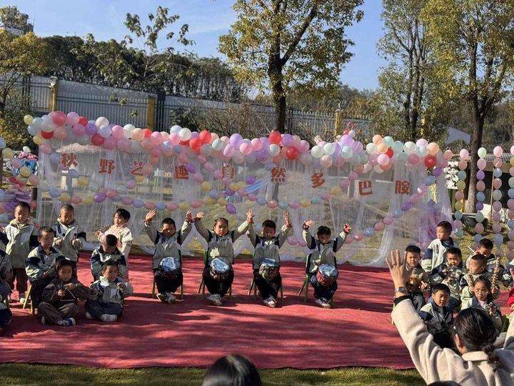 接下来,幼儿打击乐表演奏响了“秋日序曲”。“秋日序曲”。小鼓手们手持碰铃、三角铁、串铃,将大自然的声音编织成曲。稚嫩的脸庞专注投入,家长们则用手机记录下这“用乐器说自然”的童真时刻。