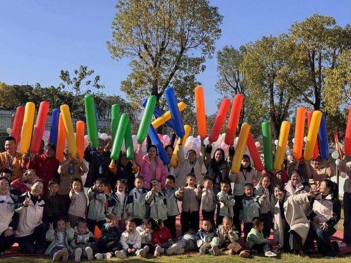 活动最后,全体家庭挥舞气球棒合影,齐声喊出“秋野艺趣,快乐无敌”的口号,将笑容定格在秋日暖阳里。