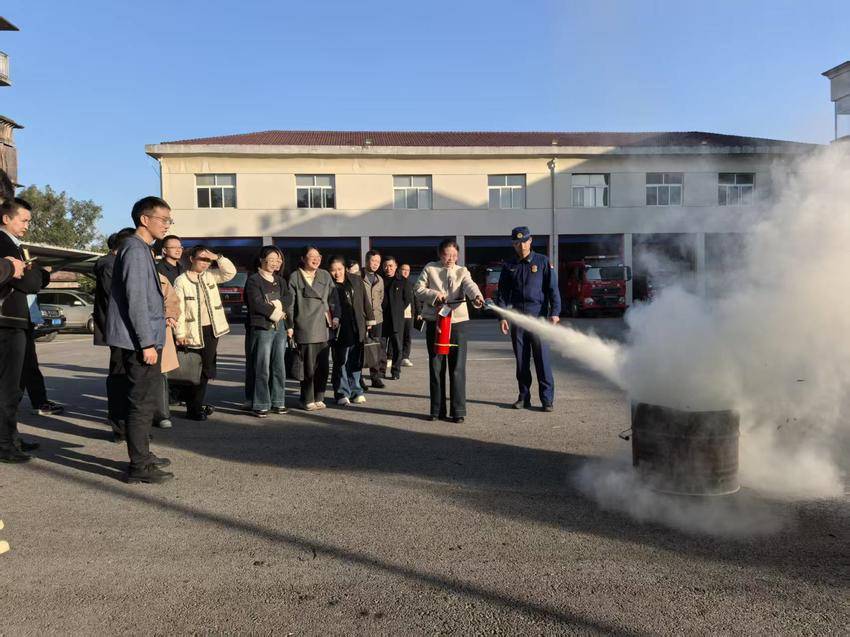 随后,全体党员认真观看《中国共产党第二十届中央委员会第四次全体会议公报》和《中共中央关于制定国民经济和社会发展第十五个五年规划的建议》视频。 活动最后,大队宣传员为城发集团机关党支部的全体党员带来了一堂生动实用的消防安全知识课。讲解员结合日常生活和工作场景,深入浅出地讲解了火灾预防、初期火灾扑救、应急逃生技巧等关键知识。在实操环节,讲解员“手把手”指导大家如何正确使用灭火器,确保每位参与者都能掌握操作要领。