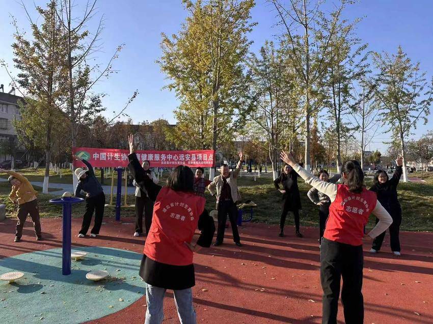 活动中,计生协志愿者首先在健身器材区为居民逐一讲解各类健身器材的功能与使用方法,并现场进行规范演示,特别强调了科学锻炼的重要性与安全注意事项。随后,志愿者带领居民共同学习了一套简单易学、节奏舒缓的健身操,动作涵盖拍打肩颈、侧身弯腰、转体伸展等基础环节。在志愿者的带动下,大家积极参与、跟练互动,时而舒展筋骨,时而放松肩周,在轻松愉快的气氛中缓解了久坐带来的疲劳感。不少居民表示,这类动作简单实用,非常适合日常锻炼。