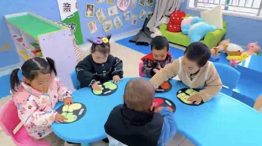 巧手创艺,点亮冬日色彩。手工创作环节是孩子们的最爱,活动现场的桌面上,整齐摆放着老师提前精心剪裁的彩色手套卡纸,还有缤纷的彩色黏土、纯净的白色黏土等材料。萌娃们化身小小艺术家,用彩色黏土,在老师准备的“彩色手套”上摁下一个个圆滚滚的小点点,红的、黄的、蓝的……五彩斑斓的点缀,让原本单调的手套瞬间灵动起来。