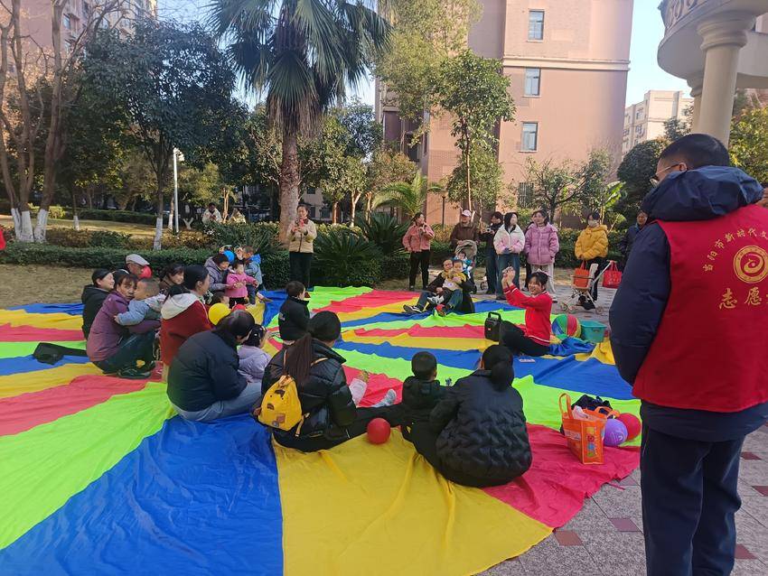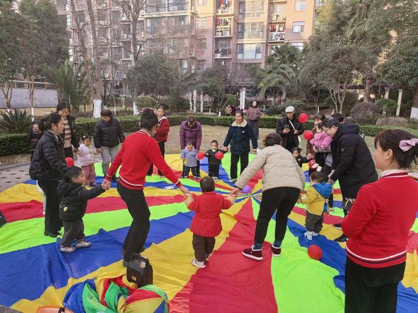 湖北日报客户端讯(通讯员 肖萍)为丰富社区亲子文化生活,增进亲子情感联结,践行新时代文明实践精神,1月8日下午,当阳市玉阳街道广家洲社区新时代文明实践站在凯旋国际小区喷泉广场举办亲子妙事多音乐律动户外课堂活动,活动吸引了小区内1—3岁的幼儿及家长踊跃参与。 活动现场,色彩斑斓的游戏垫铺满广场,成为孩子们的欢乐天地。社区新时代文明实践志愿者提前到场布置场地、维持秩序,为活动顺利开展保驾护航。课堂以妙事多音乐律动为核心,通过趣味肢体游戏、亲子音乐互动、简易乐器体验等多样化形式展开。在真爱幼幼教育老师的引导下,萌娃们跟着节奏拍手、跺脚,和家长一起玩起了音乐小游戏,稚嫩的歌声、欢快的笑声回荡在广场上空。家长们也放下日常的忙碌,全身心投入与孩子的互动中,现场处处洋溢着温馨的亲子氛围。