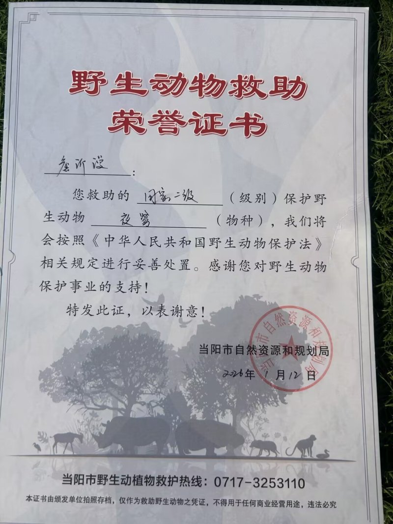 詹沂漫同学的暖心举动,不仅展现了新时代少年的责任与担当,更带动身边同学树立保护野生动物的意识。下一步,当阳市将持续开展野生动物保护宣传进校园、进社区活动,让“人与自然和谐共生”的理念深入人心,凝聚全民护生共识,筑牢生态保护屏障。