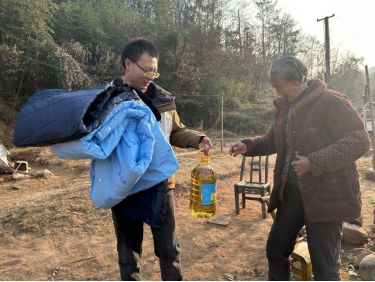 发放现场,棉被、棉大衣、米油等实用性强的救灾物资整齐码放,村“两委”干部分工协作,耐心引导群众签字确认、有序领取。“大爷,这床棉被厚实,您冬天盖着暖和,有困难随时跟我们说!”村干部一边帮独居老人徐大爷搬物资,一边细心叮嘱。针对行动不便的困难群众,村“两委”组建“送暖小分队”,踏着乡间小路逐户上门送物资、问冷暖,详细了解他们的身体状况和生活需求,现场讲解冬春救助、医疗保障等惠民政策,让群众既得物资帮助,又懂政策福利。“感谢村里惦记着我们,感谢党和政府的好政策......”接过米油的罗奶奶感动地说。