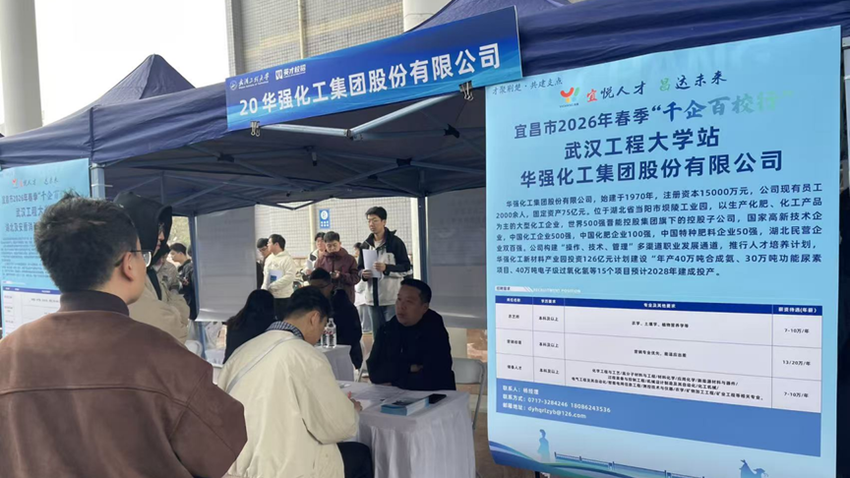 湖北日报客户端讯(通讯员 刘孟翔)2026年3月23日,当阳市人社局带领华强化工、徽阳新材料、东田微科技等5家企业,奔赴武汉工程大学,参加宜昌市2026年春季“千企百校行”高校巡回招聘活动。
