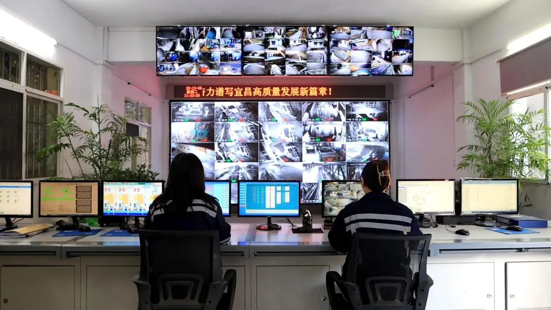 沿河而上,走进苏家坡磷矿生产区的中控室,25个液晶屏正在对矿山深处进行现场直播,在屏幕上可以清楚地看到每一名工人在井下的运动轨迹,并实现生产区域空气质量、地压等监测监控。 机电设备维修员刘祖常和同事正坐在电脑前远程进行矿石破碎作业,据他介绍,过去脏、苦、险、累的井下破碎工作,如今穿着干净的工作服,坐在明亮的调度指挥中心便能完成,一人可同时操作多台井下设备。