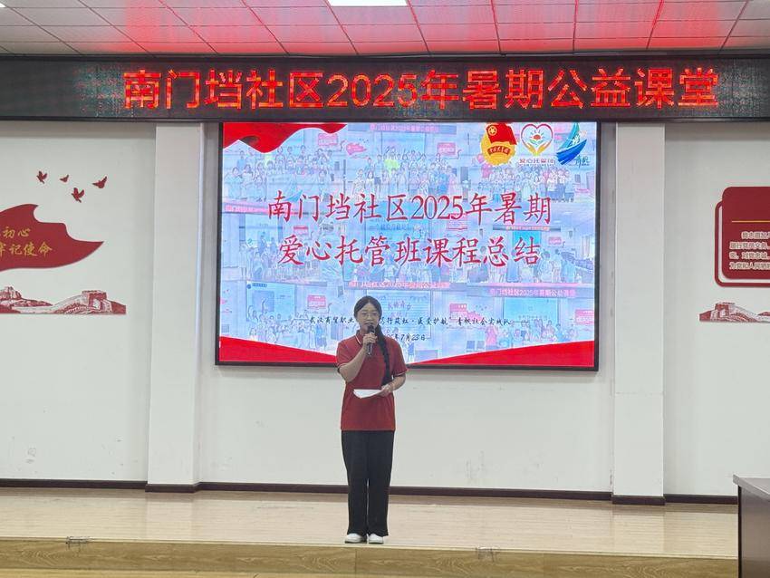 湖北日报客户端讯(通讯员 叶翔 袁雅丽)近日,武汉商贸职业学院“笃行筑虹・医爱护航”青帆社会实践队在当阳市玉阳街道南门垱社区开展的为期10天的暑期爱心托管班顺利结班。这场爱心托管班不仅为社区儿童带来了丰富多彩的假期生活,其别具一格的课程设置与精彩纷呈的结班仪式,引发热烈反响。