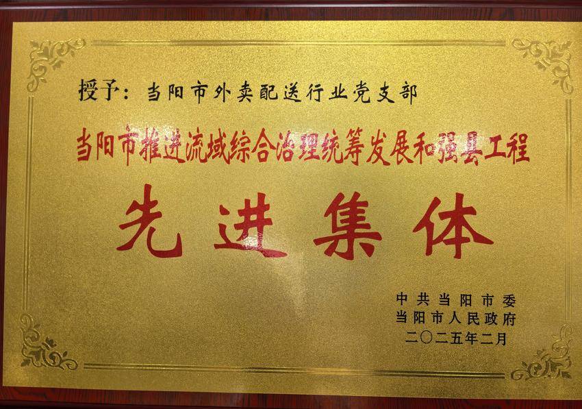 湖北日报客户端讯(通讯员 周静松)2月8日,当阳市外卖配送行业党支部被授予当阳市推进流域综合治理统筹发展和强县工程先进集体。当阳市市场监督管理局作为外卖送餐行业的主管部门,早于2022年9月在宜昌市范围内率先设立当阳市小微企业个体工商户专业市场综合党委和当阳市外卖配送行业党支部,统筹推进“小个专”领域和新兴领域党建工作,相继完成了5家专业市场党组织建设全覆盖及10个街道乡镇“小个专”党建工作指导站全覆盖工作。
