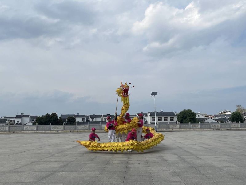 记者在淯溪镇看到,一支由妇女组成的舞龙队伍正在训练,龙头动,龙身起!游龙跟随音乐的步伐不断地穿梭着,变换动作,女子舞龙队在音乐的配合下展现龙的形态,表现出灵巧、活泼、喜庆的艺术特点。