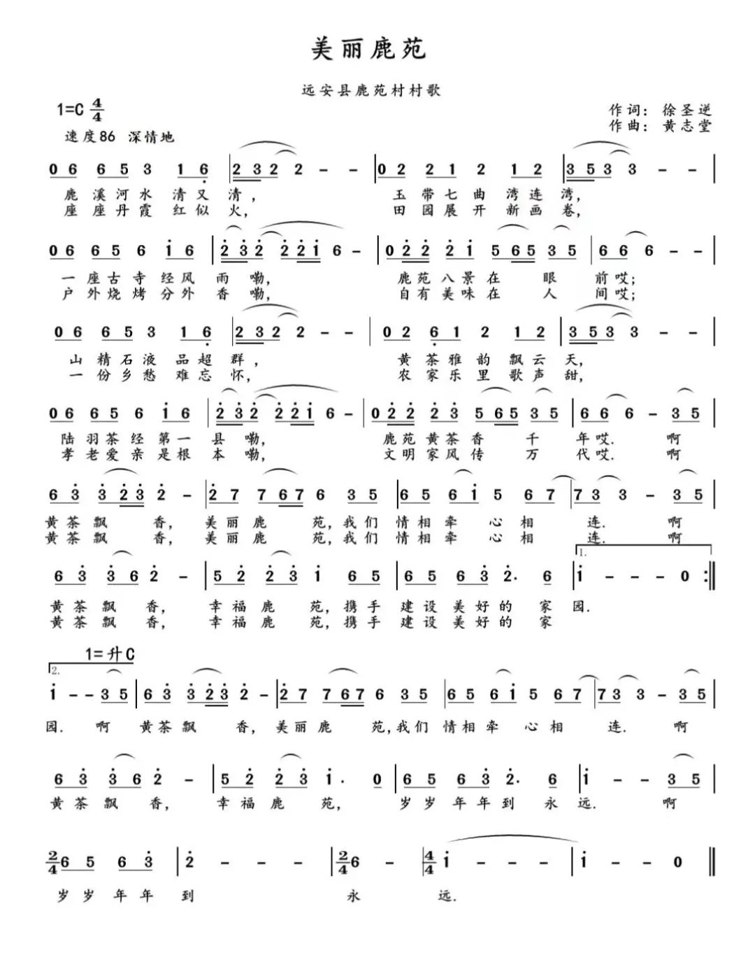 副歌采用直抒胸臆的手法,歌颂美丽鹿苑茶旅融合向未来,人民群众创造文明幸福生活的美好愿景。