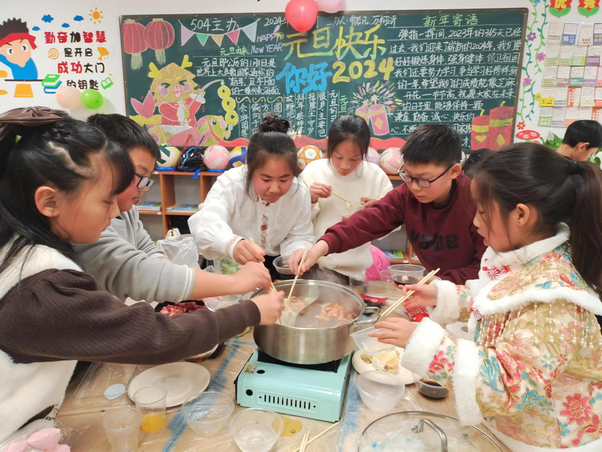 本次活动分为奔跑吧育林、智趣活动和舌尖盛宴三个精彩环节。“奔跑吧,育林”在中国传统节目舞龙表演中拉开了序幕,随之而来的是身着节日盛装的孩子们,他们带着喜悦的笑容,激动地向大家打着招呼,展示了他们独有的青春气息。随后,在老师的带领下,孩子们在教室里开展了一系列精彩的智趣活动:剪窗花、写对联、做糖画、写福字、猜灯谜.....孩子们多才多艺,不仅展现了他们的天赋和才华,更体现了他们无限的潜力和对新年的希望。