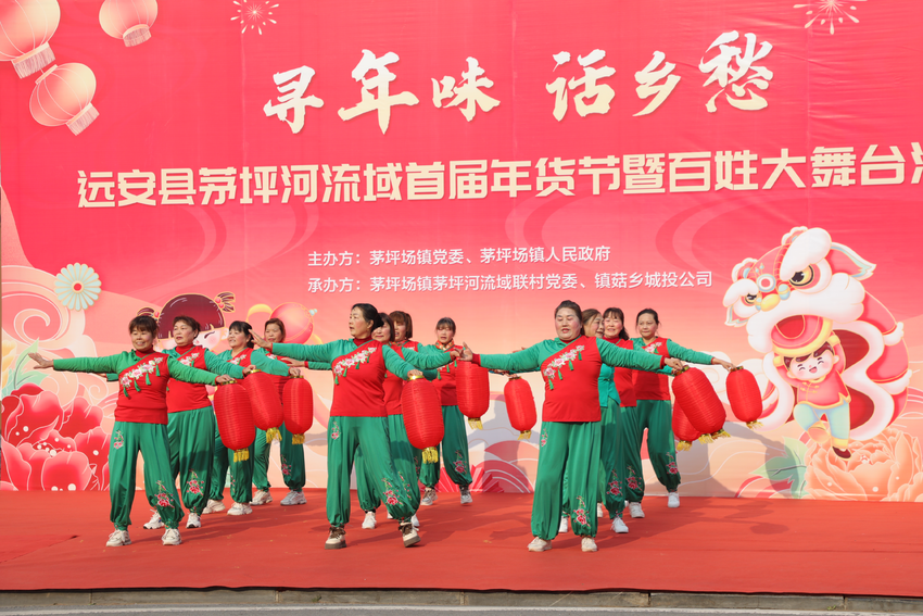 在欢天喜地的腰鼓声中,年货节拉开帷幕,传统舞《开门红》、个人独唱《一路生花》、广场舞《新龙船调》、民俗表演《又是一个丰收年》等精彩节目轮番上演,引得台下掌声阵阵。有奖问答环节,瞬间将现场的气氛推向了高潮。普通的村民和政府年轻的干部,变身舞台上的“主角”,共同演绎了一场乡村文化盛宴,展现出茅坪河流域乡村发展新风貌。
