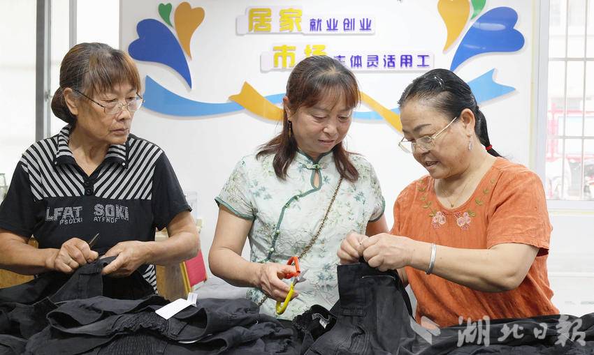 送孙女到学校后,范元红来到了家门口“就业超市”打零工,做一些简单的服装加工工作。计件结算,工时灵活,方便接送孙女放学。范元红告诉记者,以前在老家没什么事做,现在在家门口的“就业超市”工作,每个月有1千多元的收入,感觉很开心。