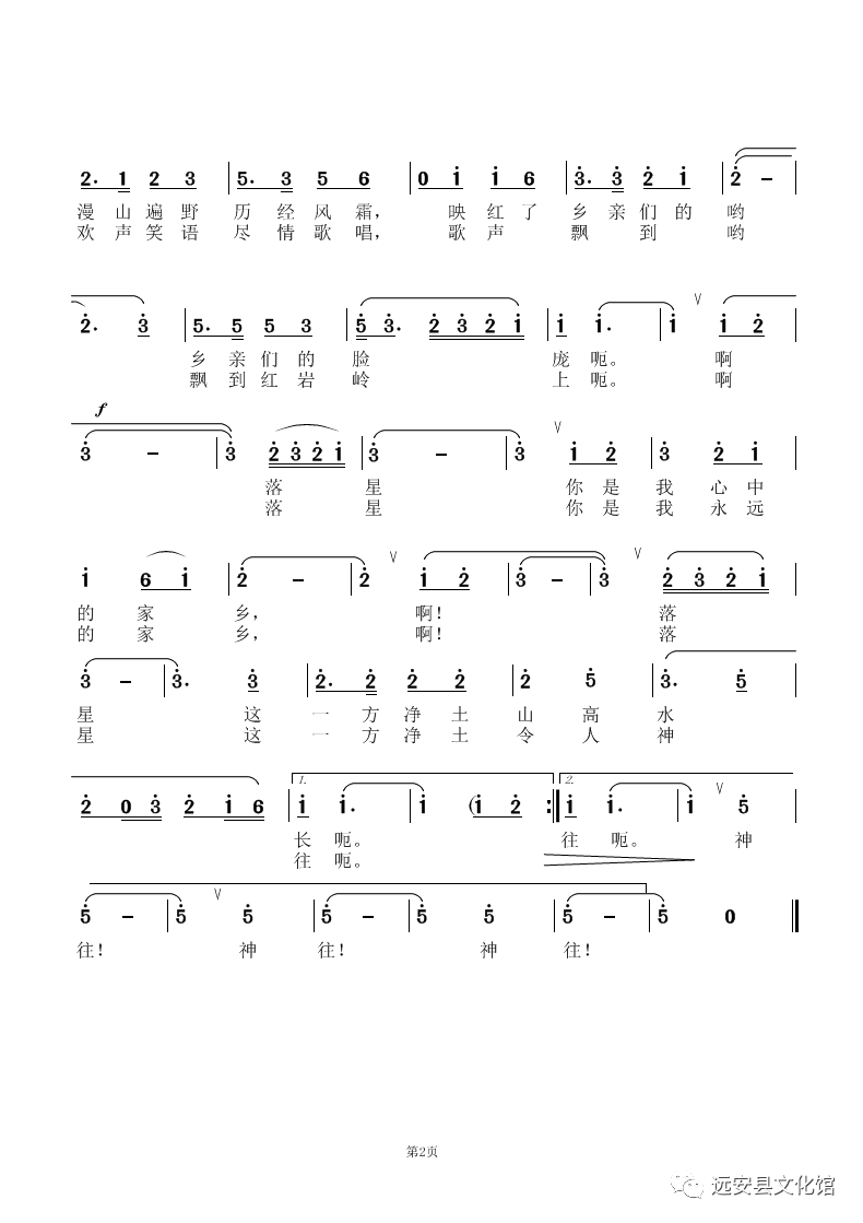 该歌曲为河口乡落星村村歌。歌曲以落星村的地方景观和厚重文化为基调,宣传乡村旅游和乡村振兴给山村带来的变化,展示了该村厚重的民俗文化和旅游开发前景。歌曲旋律舒缓悠扬,唱出了家乡美,唱出了幸福情。