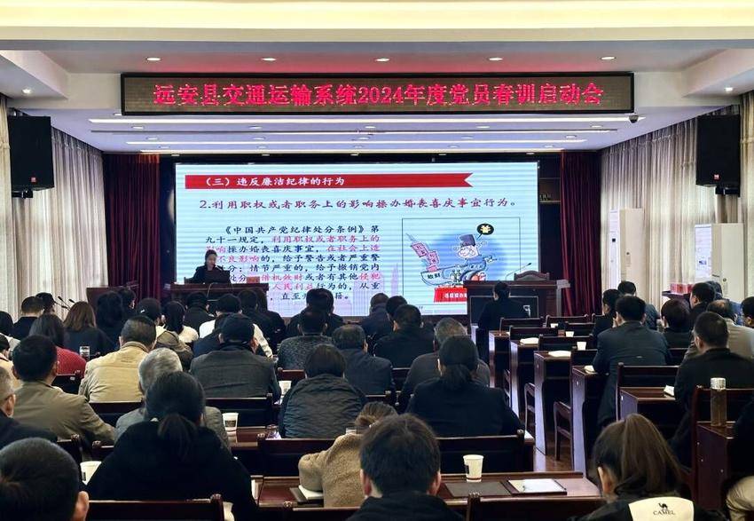 为全面提高交通运输系统党员干部综合素质和能力,加强队伍建设,3月27日,远安县交通运输局召开2024年度党员春训动员暨第一次培训活动,举办廉政专题讲座,为160名党员干部上廉政课。