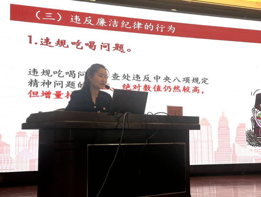 讲座邀请远安县纪委监委党风政风监督室主任覃雯雯,以《严明党的纪律规矩 筑牢廉政思想根基》为主题进行廉政宣讲,授课注重理论与视频案例相结合,深入浅出,让大家受益匪浅。