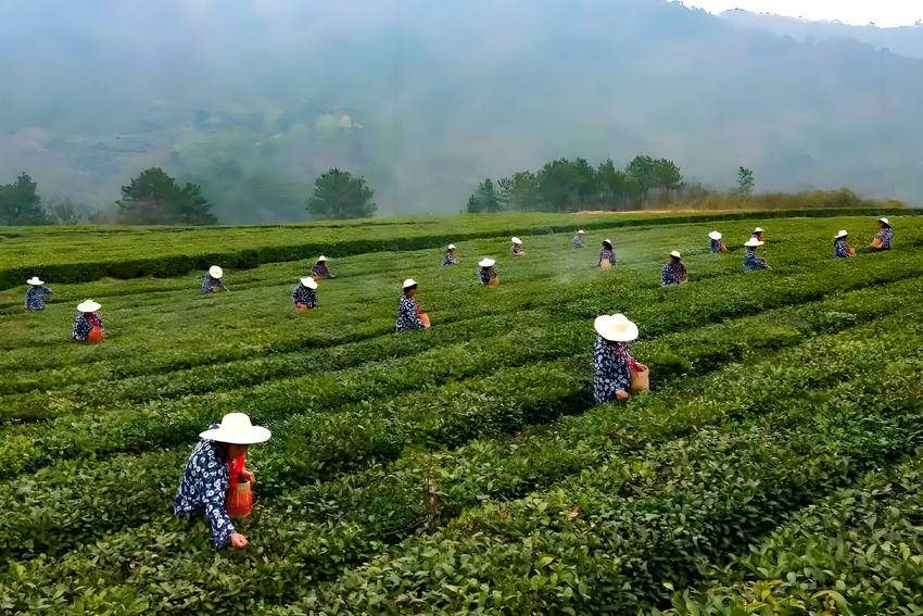 旧县镇石桥坪村茶农忙采头茬春茶远安县是唐代陆羽《茶经》中记载出上等茶的地方,有“陆羽茶经第一县”之美誉。旧县镇石桥坪村位于经年云雾缭绕的半高山地区,这里土质肥美,水源丰沛,至今已有七百余年茶叶栽培历史,产出的茶叶品质高、味道好,深受消费者喜爱。