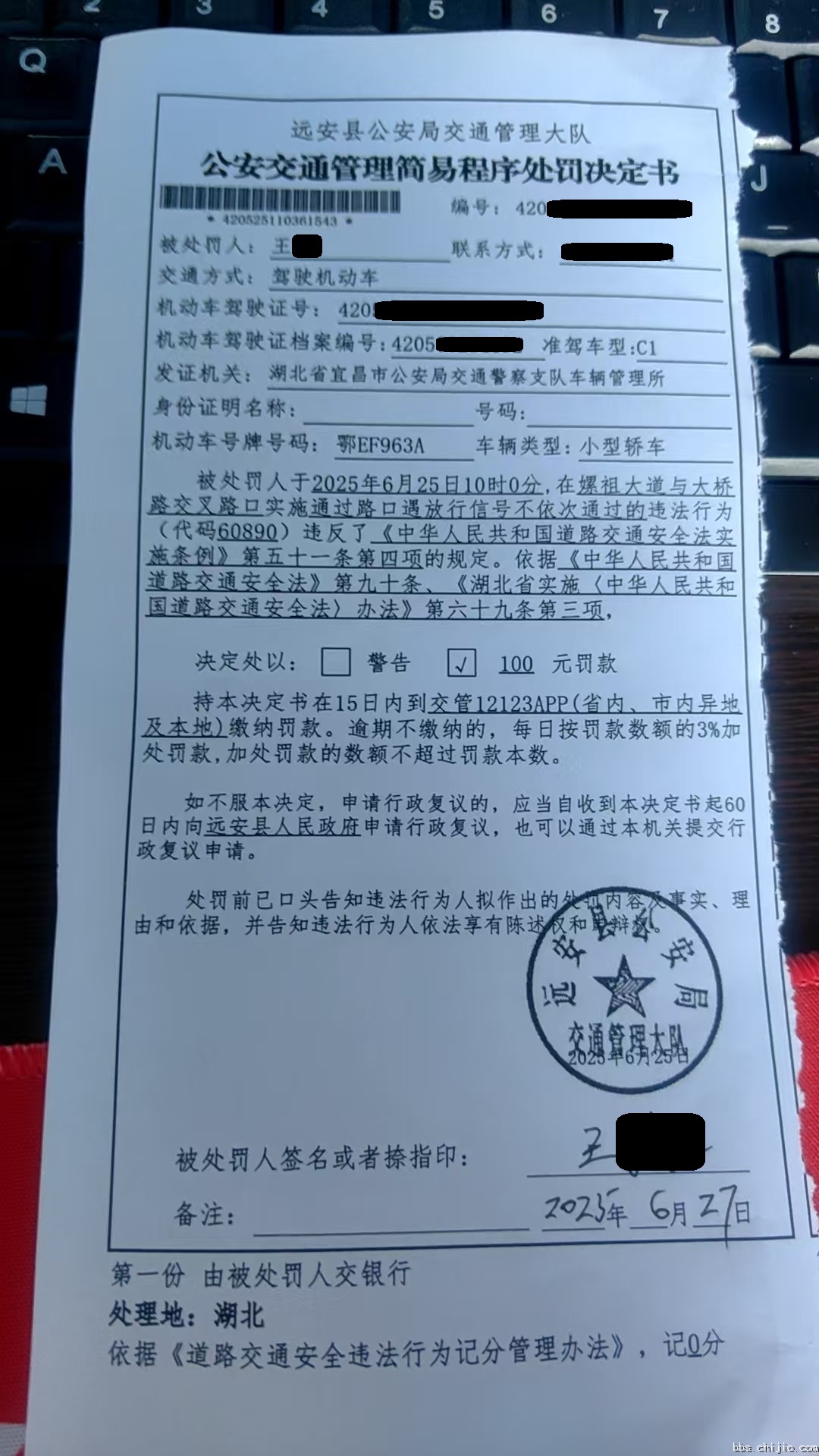 论坛当晚收到举报后,26日一上班便将该举报转交给了远安县公安局交通管理部门。 第二日(6月27日)下午,论坛收到了交管部门的回执。上述违法车辆已被依法处罚。 以下是该车驾驶员王某的处罚决定书