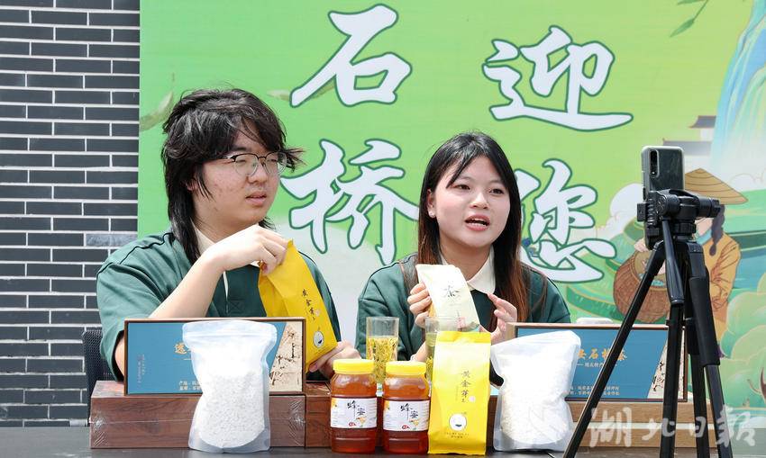 茶产业是石桥坪村的主导产业。就读电子商务专业的杨吕靖同学,在大学期间系统学习过电商直播课程。在这次的社会实践活动中,她运用所学知识和同学开展直播带货,帮助村民销售茶叶、蜂蜜等土特产品。