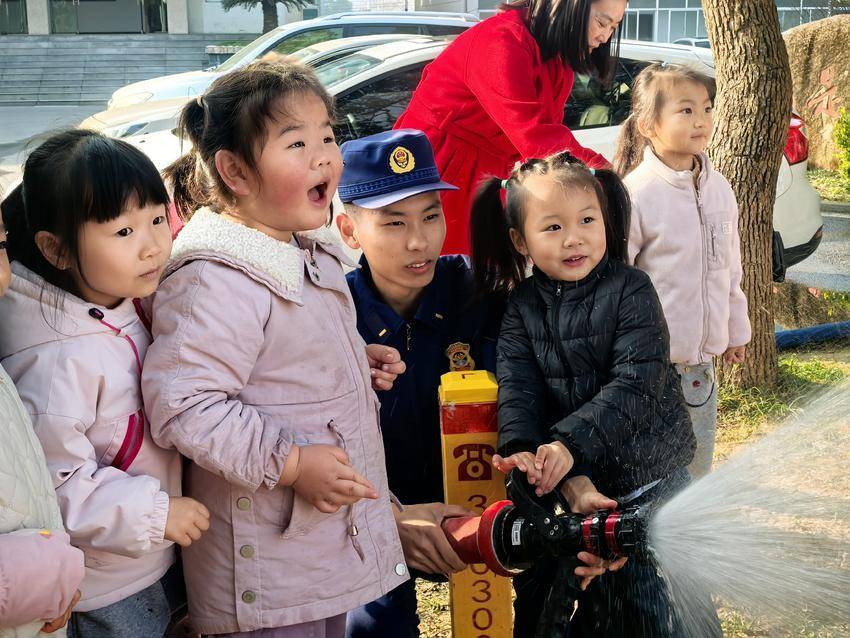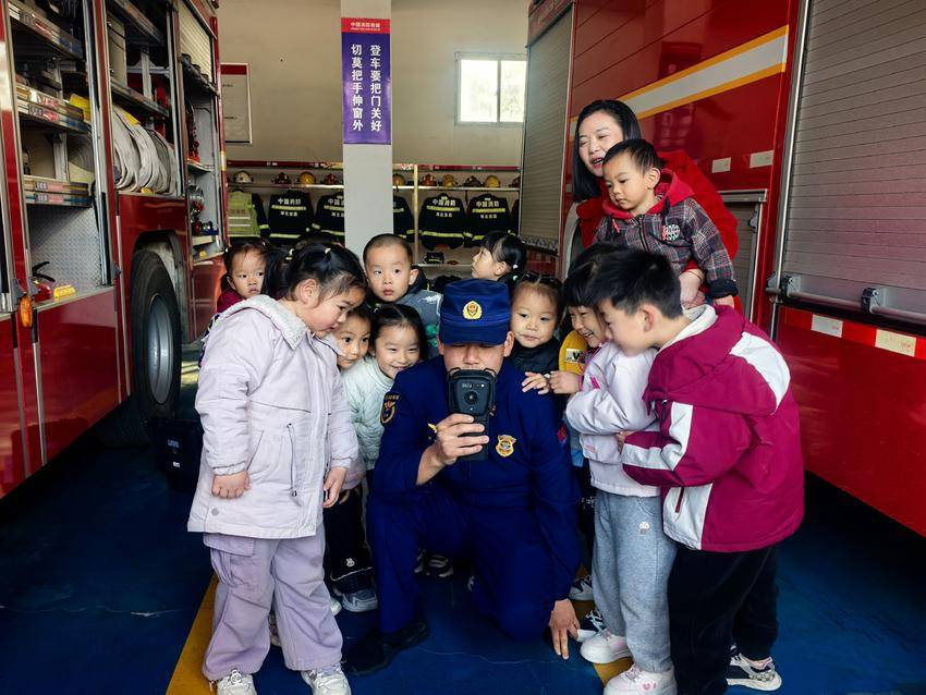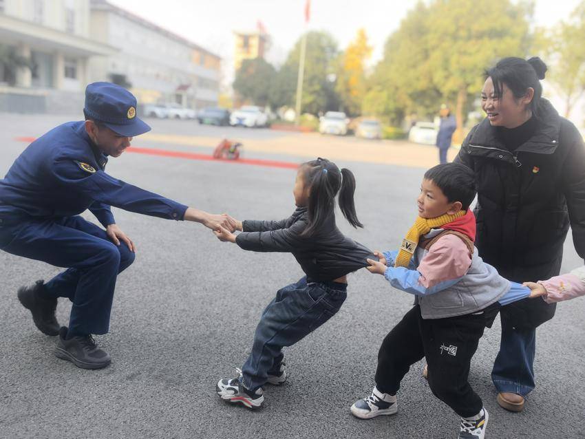趣味互动环节更是点燃了孩子们的热情,大家与消防员叔叔展开了一场欢乐的“比手力”较量,稚嫩的脸庞上满是专注与兴奋。活动尾声,孩子们与消防员叔叔亲切合影,纷纷送上拥抱道别,用最纯真的方式表达对“火焰蓝”的喜爱与敬佩。