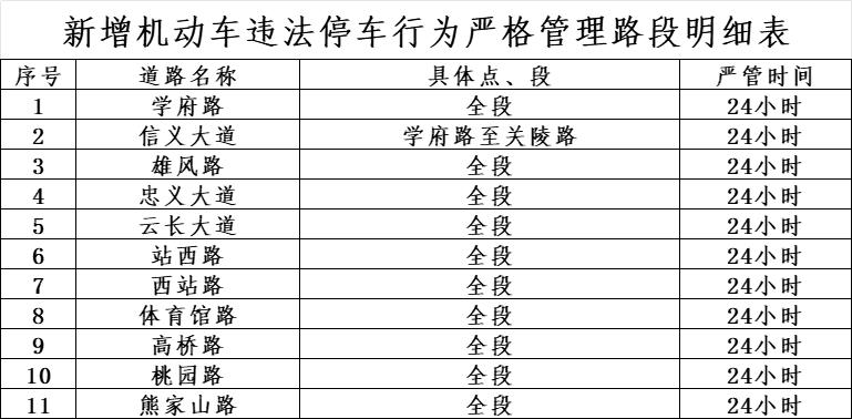 一、新增违法停车严格管理路段: