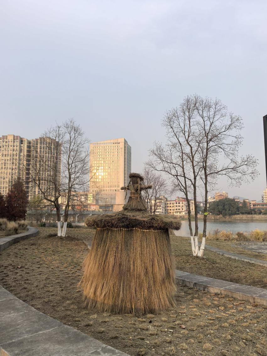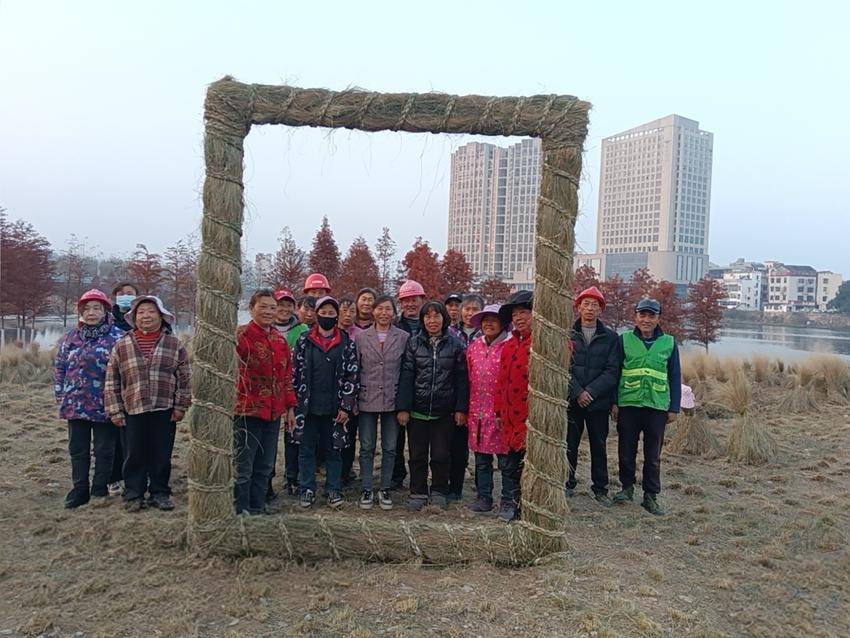 变废为宝,践行生态循环 目前,桃花岛的粉黛乱子草已经进入衰败期。我们组织养护人员将割掉的粉黛,通过手工编织、创意构型等手法,将其转化为富有野趣的小品,后续更多创意小品还在解锁中。这一实践不仅显著减少了园林垃圾外运量,实现了有机物原位循环利用,更直观地向公众传递了生态环保、资源节约的理念,增添了公园的文化内涵与教育功能。