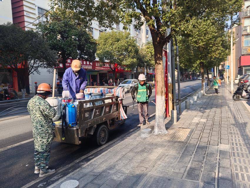 湖北日报客户端讯(通讯员马文雅)行道树与街头花草,是城市四季无声的陪伴者。春萌新芽、夏送浓荫、秋染彩妆,而入冬之后,它们亦需一份精心的呵护。为确保绿化植物安稳越冬,蓄力来年生发,县住建局园林养护工作已全面有序展开。 一、道路养护:为行道树穿上“防护衣” 针对城区主干道树木,我们推进两项基础养护: 统一刷白,防寒防虫 初入冬,我局已督促养护单位启动树木刷白工作,现城区主要干道的行道树都已经穿上整齐的“白色冬衣”。这1.2m的“腰线”不仅能增强树木防冻抗寒能力,还可有效杀灭树皮缝隙中的越冬虫卵,为树木健康筑牢基础。