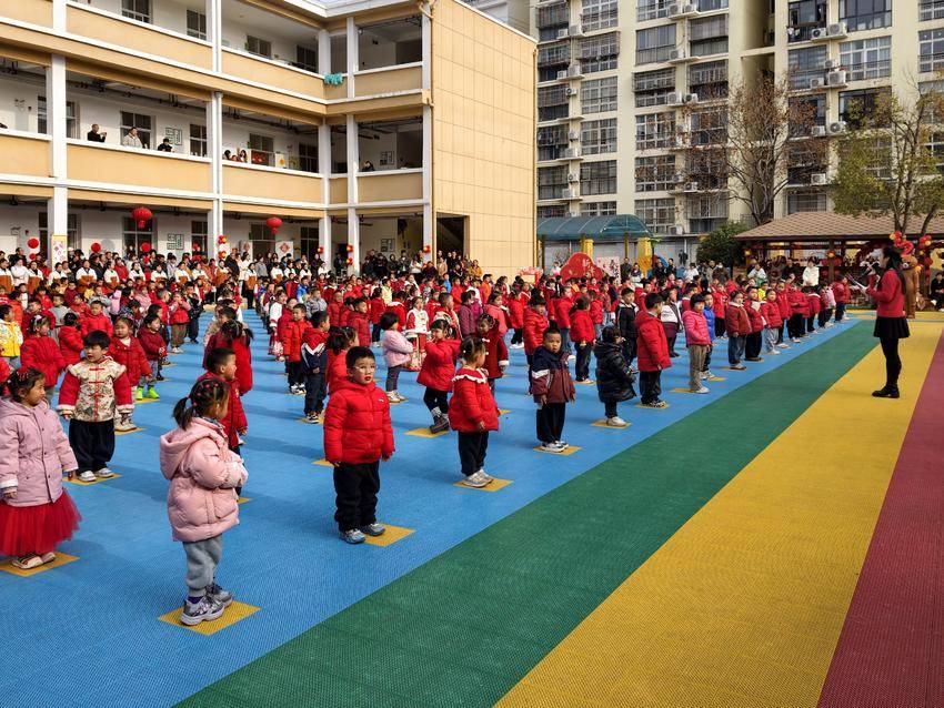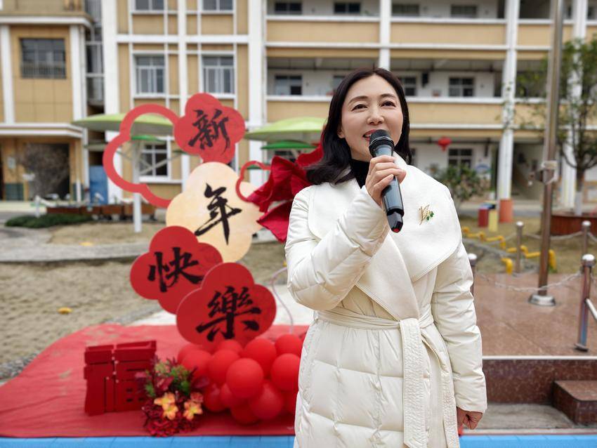 随后园长登台致辞,送上新年祝福,强调活动旨在让孩子感受传统年味、搭建家园共育桥梁、拉近亲子距离,饱含对孩子成长的期许与家园共育的展望。
