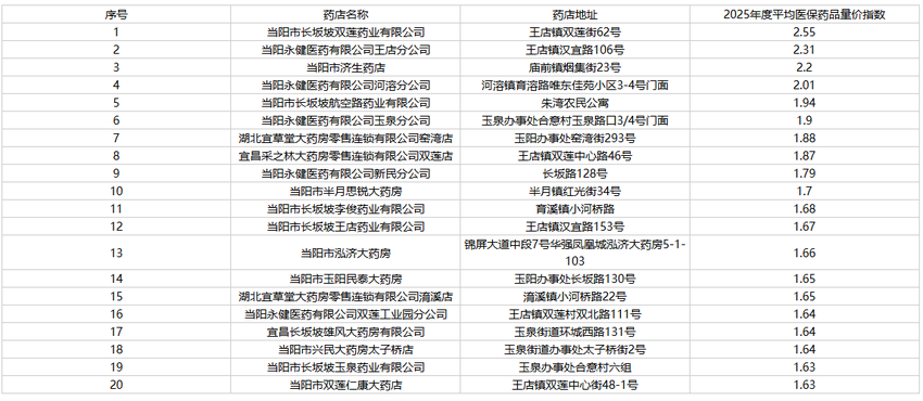 [曝光] 曝光当阳市定点零售药店量价比较指数最高的20家名单 |