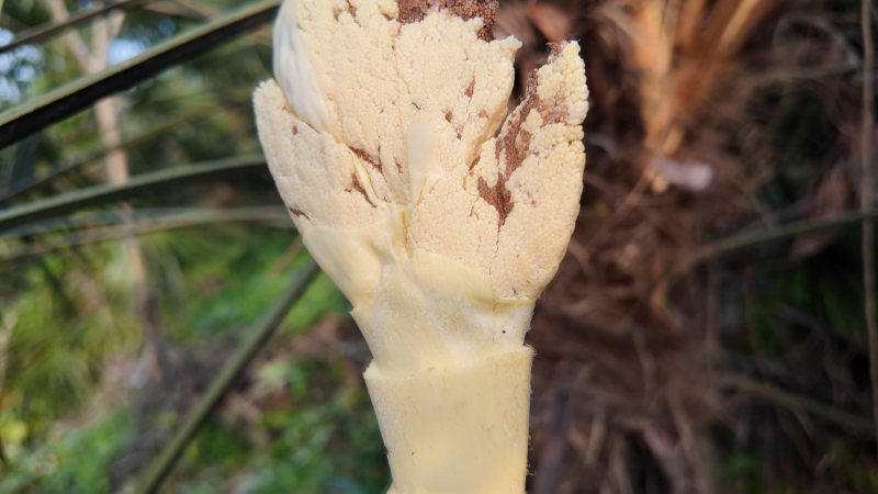 在王店镇跑马村的棕笋种植基地,当阳市巨丰农木合作社员工聂光明正娴熟地采收棕笋,手起刀落间,一根根鲜嫩的棕笋应声而落。剥开层层叠叠的笋衣,里面密密麻麻簇拥着的,是一粒粒圆润饱满的浅黄小颗粒,细闻还有一股植物的清香。