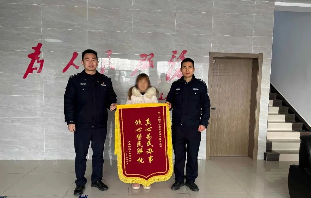 “真是太感谢你们了,这么快就帮我找回来了!”1月26日当阳市淯溪镇一快递点的陈老板将一面印有“真心为民办事,倾心替民解忧”的锦旗送到了民警手中对其表示感谢。