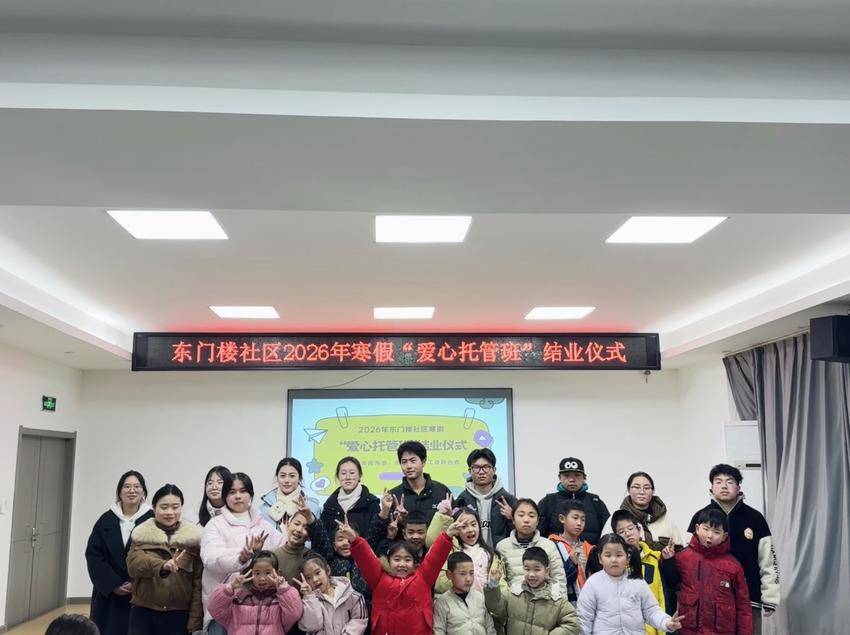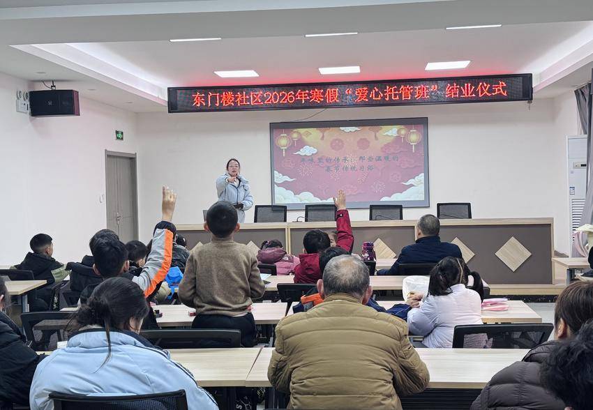 湖北日报客户端讯(通讯员 郭婕 黄伊敏)2月13日下午,当阳市玉阳街道东门楼社区会议室内暖意融融,2026年寒假“爱心托管班”结业仪式在此温馨举行。本期托管班由当阳团市委、当阳市玉阳街道东门楼社区工会联合会联合主办,自2月6日开班以来,为期将近一周的精彩课程与暖心陪伴,为社区孩子们打造了一个充实、快乐、有收获的假期家园。