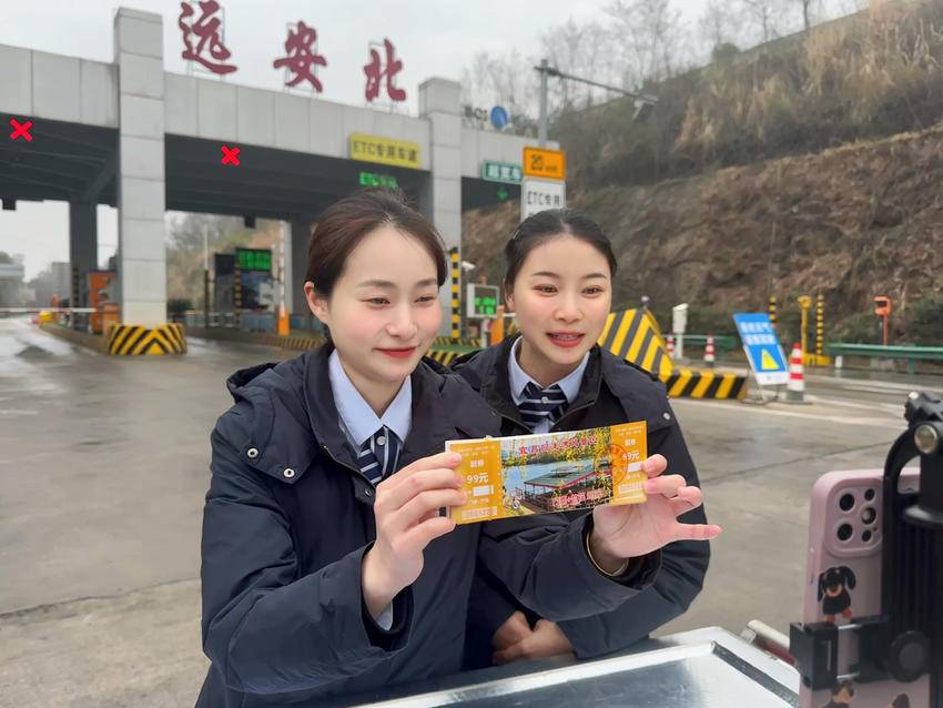 湖北日报客户端讯(通讯员 周晓敏)3月20日,湖北交投宜昌运营公司远安北收费站以“春启峡江 宜路相伴”为主题,开展回龙湾景区收费营销活动。当天,“橘子红”直播间在收费现场搭台开播,通过“高速+文旅”融合新模式,为过往司乘送上春日出行惊喜,助力地方旅游经济焕发新活力。 “没想到下高速还能领到景区门票,这趟出行太值了!”20日上午,从远安北收费站下站的司机李先生接过工作人员递上的回龙湾景区门票,脸上满是笑意。活动现场,“橘子红”直播团队在收费外广场搭起流动直播间,主播们手持景区宣传册,向线上观众详细介绍远安周边的旅游景点、春季踏青线路以及回龙湾景区的特色游玩项目。