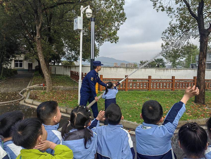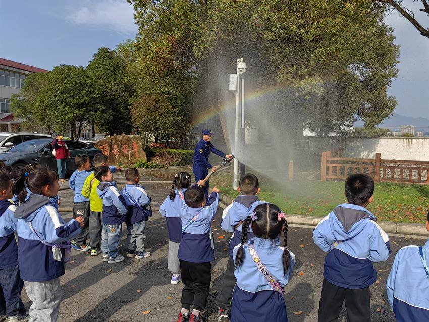 上午8:40,孩子们和老师一起乘车抵达目的地,下车后,孩子们迫不及待地开启了奇妙的消防探索之旅。在消防员叔叔的专业引导下,大家分组有序参观各类消防器材装备,从灭火器的使用方法,到破拆工具、空气呼吸器的功能用途,消防员叔叔用通俗易懂的语言逐一讲解,孩子们睁着好奇的眼睛,认真聆听、积极提问,仿佛置身于生动的消防知识课堂。更令人兴奋的是体验环节,在消防员叔叔的安全保护与指导下,孩子们试穿消防服,亲手操作消防水带,感受不同方式出水的力量,近距离触摸消防车,直观了解车辆构造与功能,沉浸式感受消防员叔叔工作的艰辛与不易。