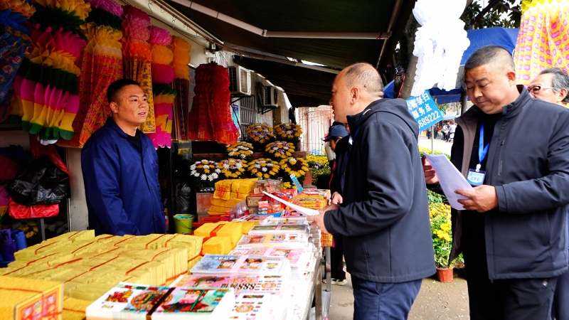 在当阳市清明园公墓,工作人员通过发放宣传资料、现场讲解、签署倡议书等形式,向市民和商户普及文明祭祀理念,倡导摒弃焚烧塑料制品、燃放鞭炮等陋习,改用鲜花、纸质祭祀用品等环保方式寄托哀思。“我们买的祭祀用品必须是环保的,不能用塑料的,要选可降解的纸质品,也不能放鞭炮,还要注意防火,把公墓的环境卫生维护好,就是给子孙后代造福。”市民叶鲜与叶娟说道。