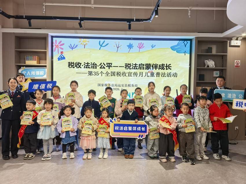 在第35个全国税收宣传月来临之际,为紧扣“税收·法治·公平”主题,将税法知识以生动有趣的形式播撒进少年儿童心田,远安县税务局走进新华书店,邀请30余名少年儿童开展“税法启蒙伴成长”主题活动,让孩子们在轻松欢乐的氛围中初识税收、了解法治,种下依法纳税、诚信纳税的小小种子。
