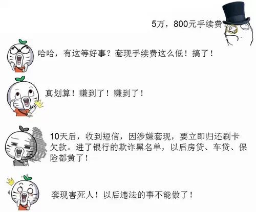 提示持卡人,在数以千计万计的信用卡套现大军中,心存侥幸的人还大有人在,但其带来的后果,征信污点,一旦上了银行的欺诈黑名单,今后想再贷款、申请信用卡等等,等待他的就只有拒绝。远离信用卡套现,套现有风险,套现不可行!
