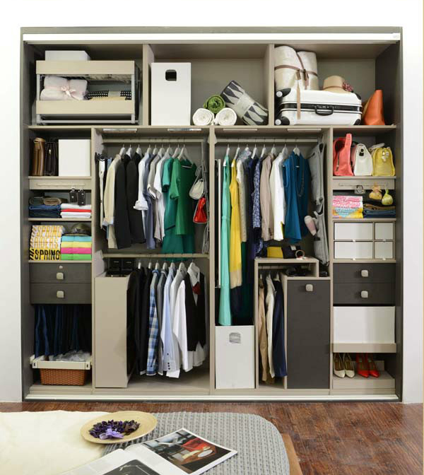 整体衣柜:大多用扣件固定,可拆移,在遇到拆移环境的尺寸不符时,可以采取局部改板、补板等方式进行局部调整。