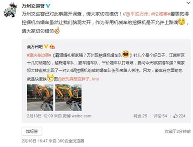 重庆街头现挖掘机婚车队被查 |