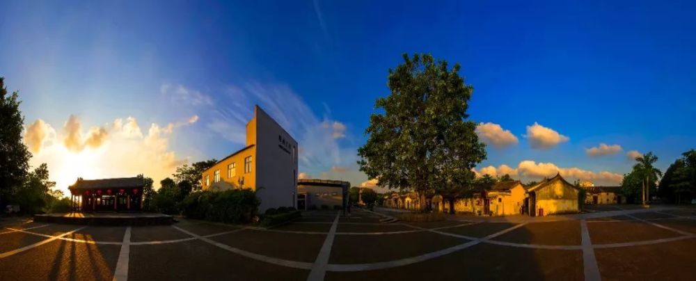 远处看到版画村的⼊口,犹如⼀片簇拥在月光下的彩云。伴随着微风的吹拂,在簌簌的树叶声中,颜⾊渐渐斑斓开来。