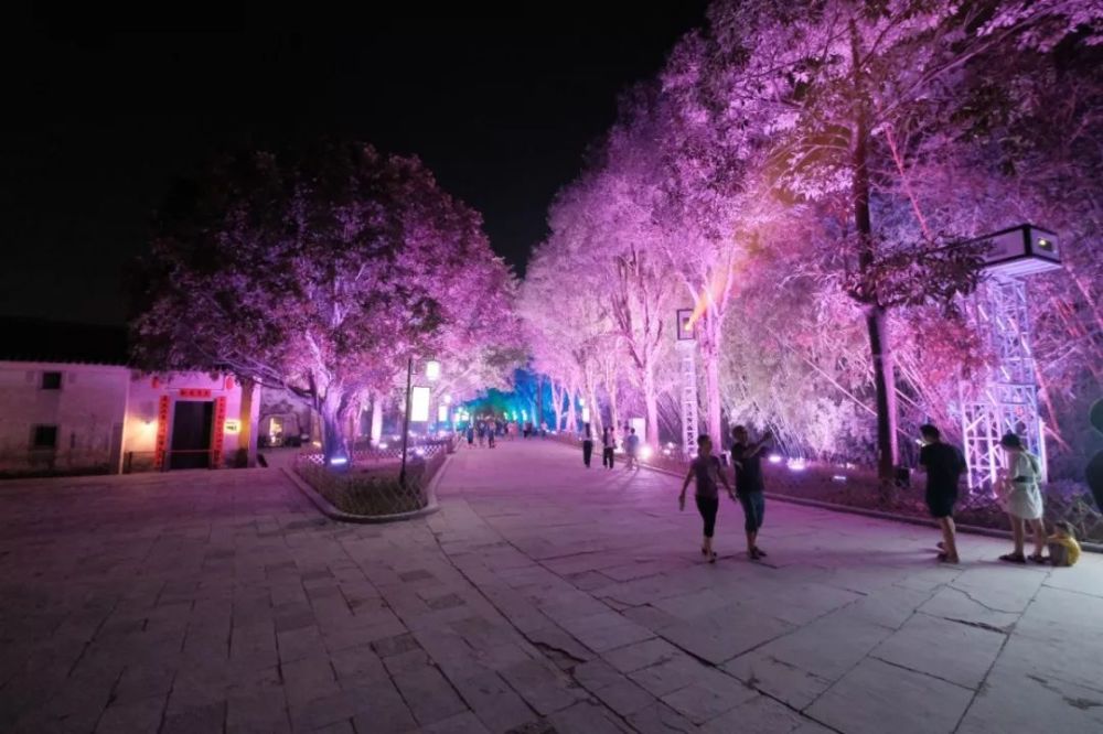 夜幕降临,版画村又换了另一幅模样。经过一个多月的闭园升级改造后,版画基地不单单只是以前的古朴典雅,更多了一些绚丽斑斓,版画基地此次携光影综艺秀,华丽重回大众眼前。